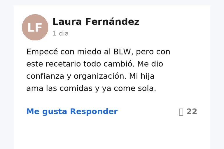 Más de mil mamás y papás ya están alimentando a sus hijos con confianza, alegría y recetas reales gracias a este recetario BLW.