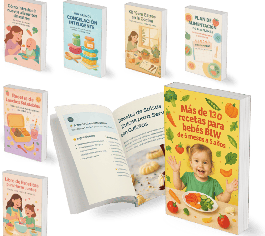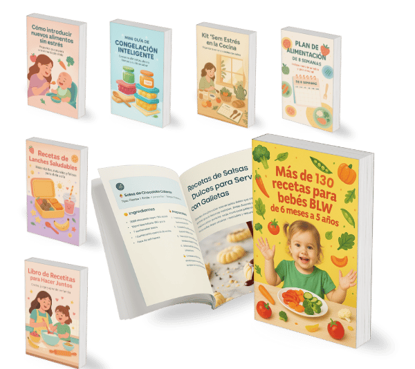 Además del eBook con más de 130 recetas BLW, recibirás menús de 8 semanas, mini guías prácticas, ideas de lanches saludables, tips de congelación inteligente y recetitas para cocinar en familia. ¡Todo para una alimentación feliz y sin estrés!